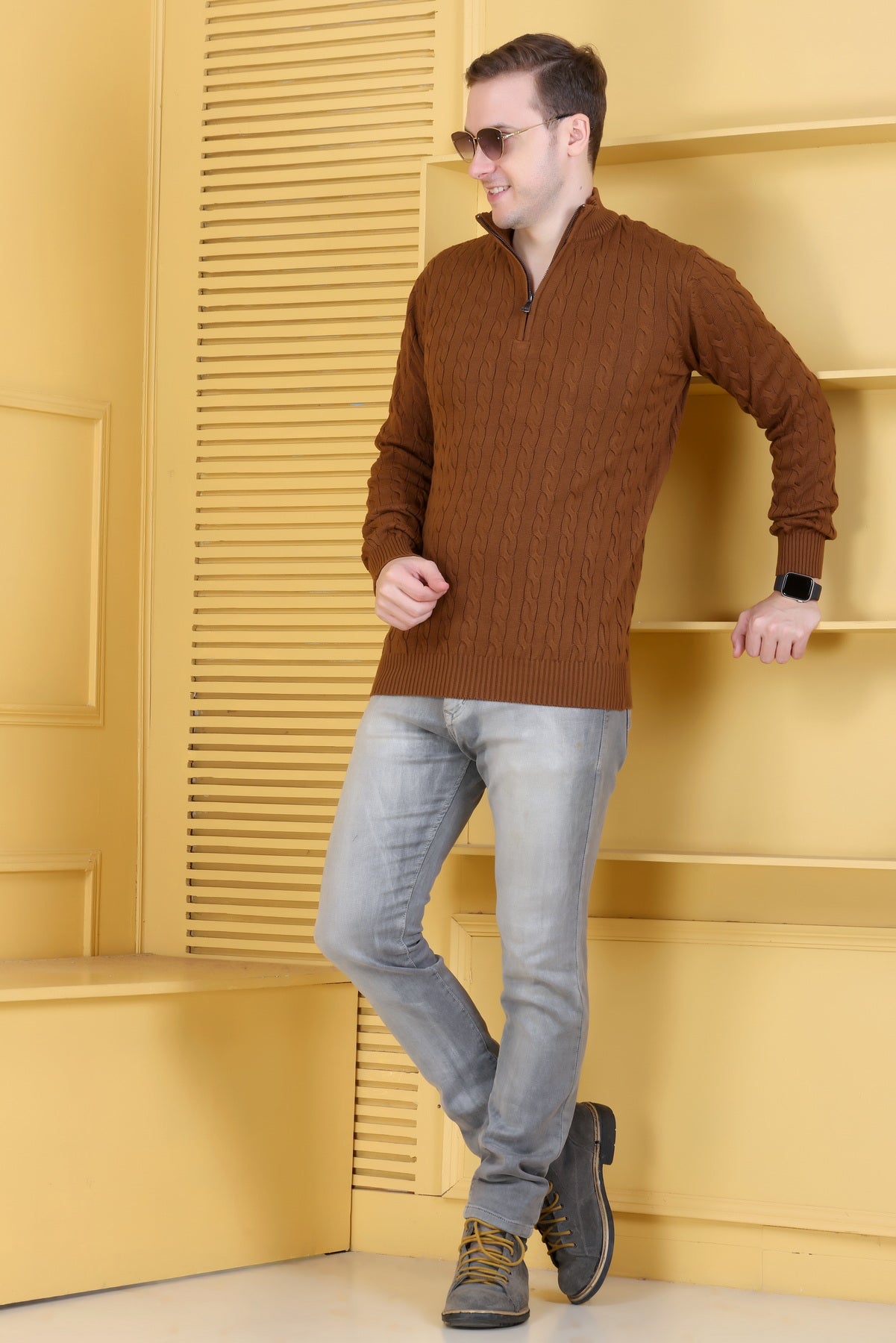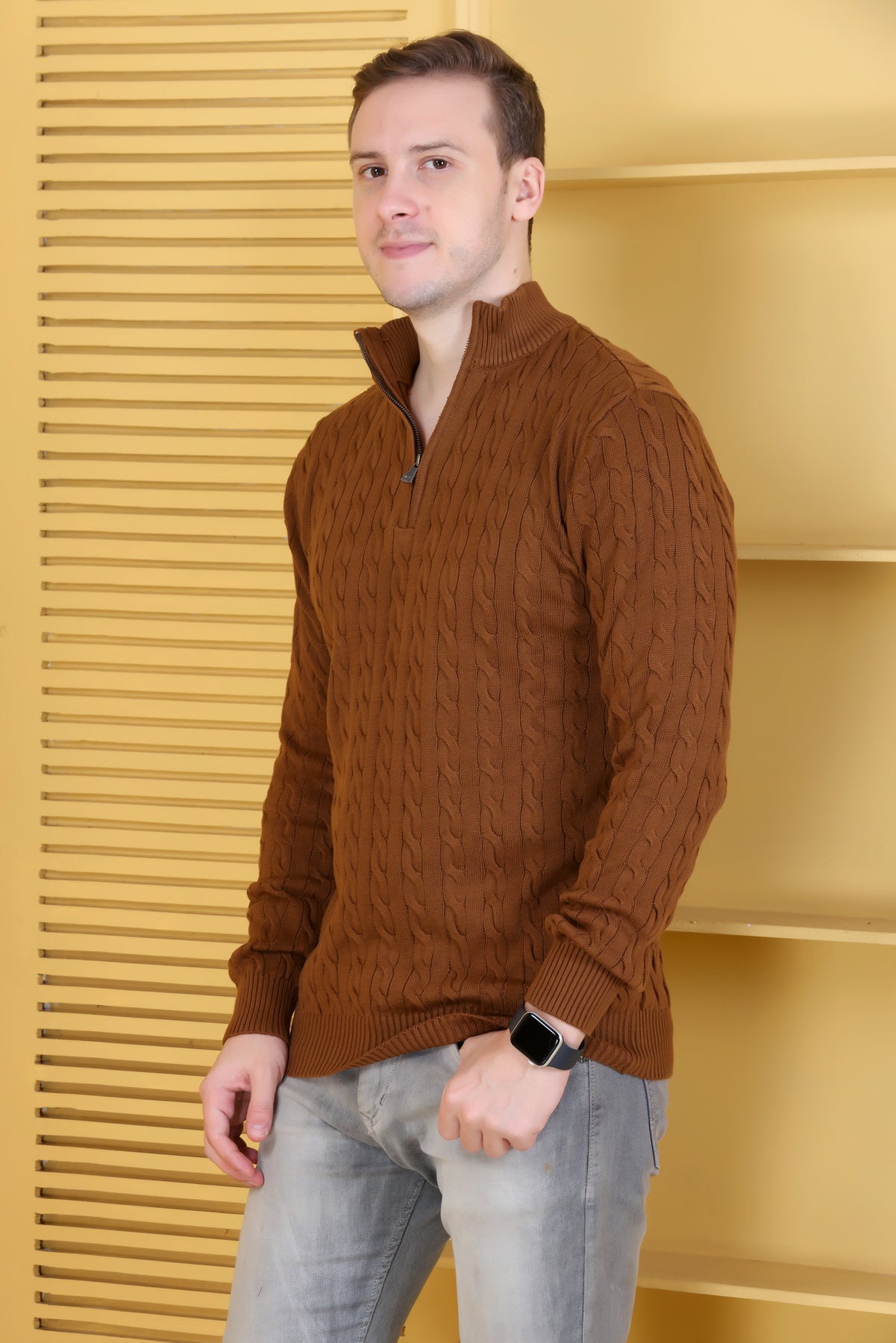 Stay stylish and warm this winter with our Men’s Branded Polo Neck Half Zipper Woolen Knitted Pullover Sweater. Crafted from premium quality wool blend, this sweater offers a perfect balance of comfort, durability, and modern design. The polo neck with a half-zip closure adds a touch of sophistication, while the full sleeves and fine knitted texture keep you cozy during chilly days. Ideal for both casual outings and semi-formal occasions, this pullover pairs effortlessly with jeans, chinos, or trousers for a refined winter look.