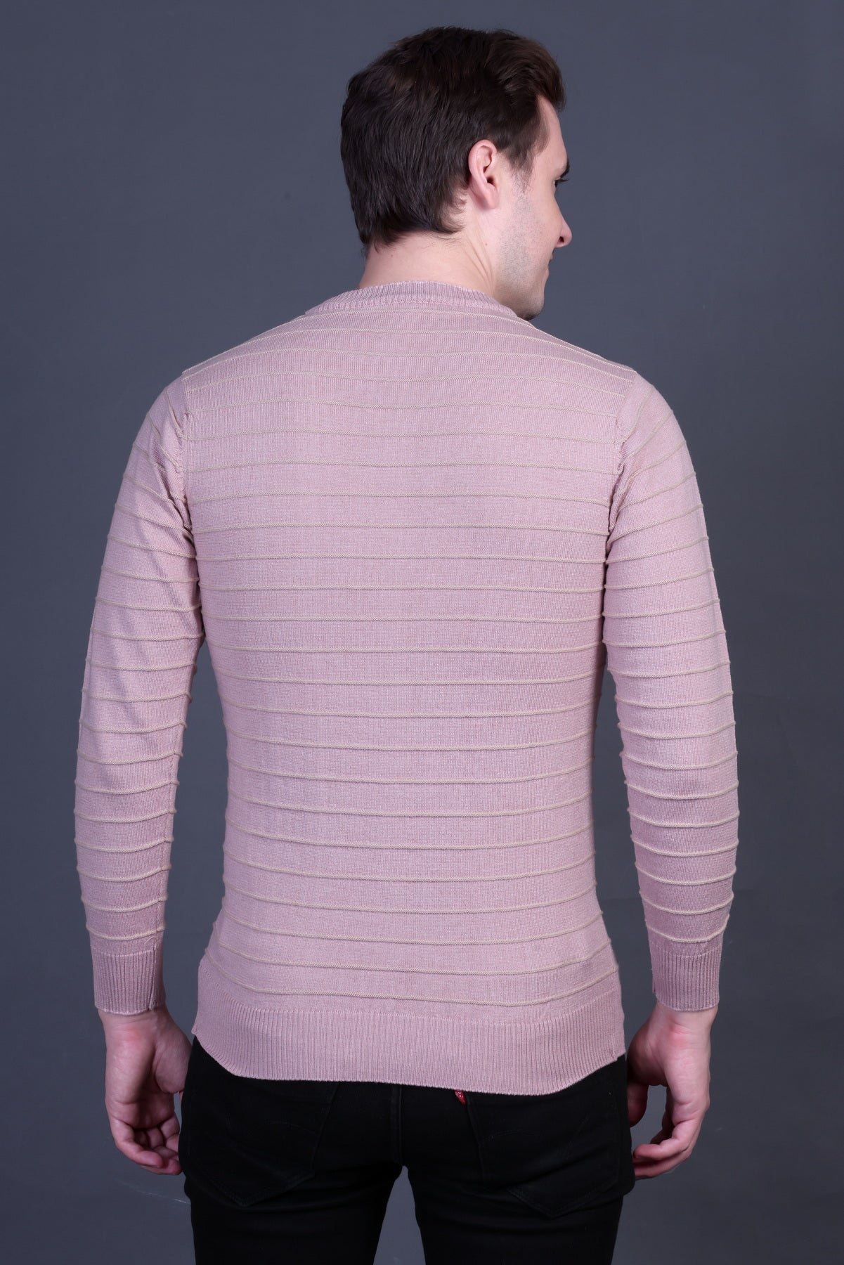 Elevate your casual wardrobe with this Men’s Light Pink Striped Sweater, designed for both comfort and contemporary style. Crafted from a soft knit fabric, this pullover offers a sleek silhouette with a gentle stretch that moves with you. The subtle horizontal black stripes add a touch of sophistication to the pastel tone, making it an ideal choice for day-to-day wear or semi-casual events. Pair it effortlessly with jeans or chinos for a polished yet relaxed look.