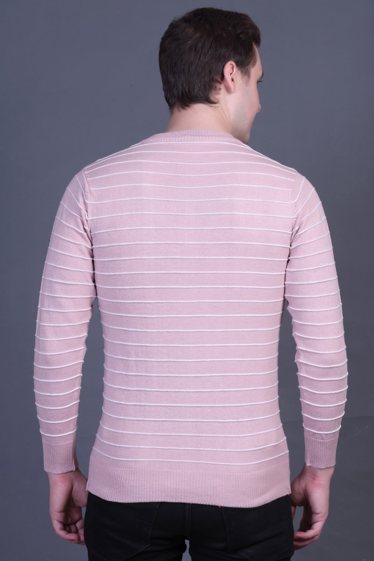Men’s striped sweater, crew neck pullover, light pink sweater, casual knitwear, men’s winter fashion, soft cotton sweater, lightweight jumper, slim fit pullover, modern casual wear, stylish men’s clothing.