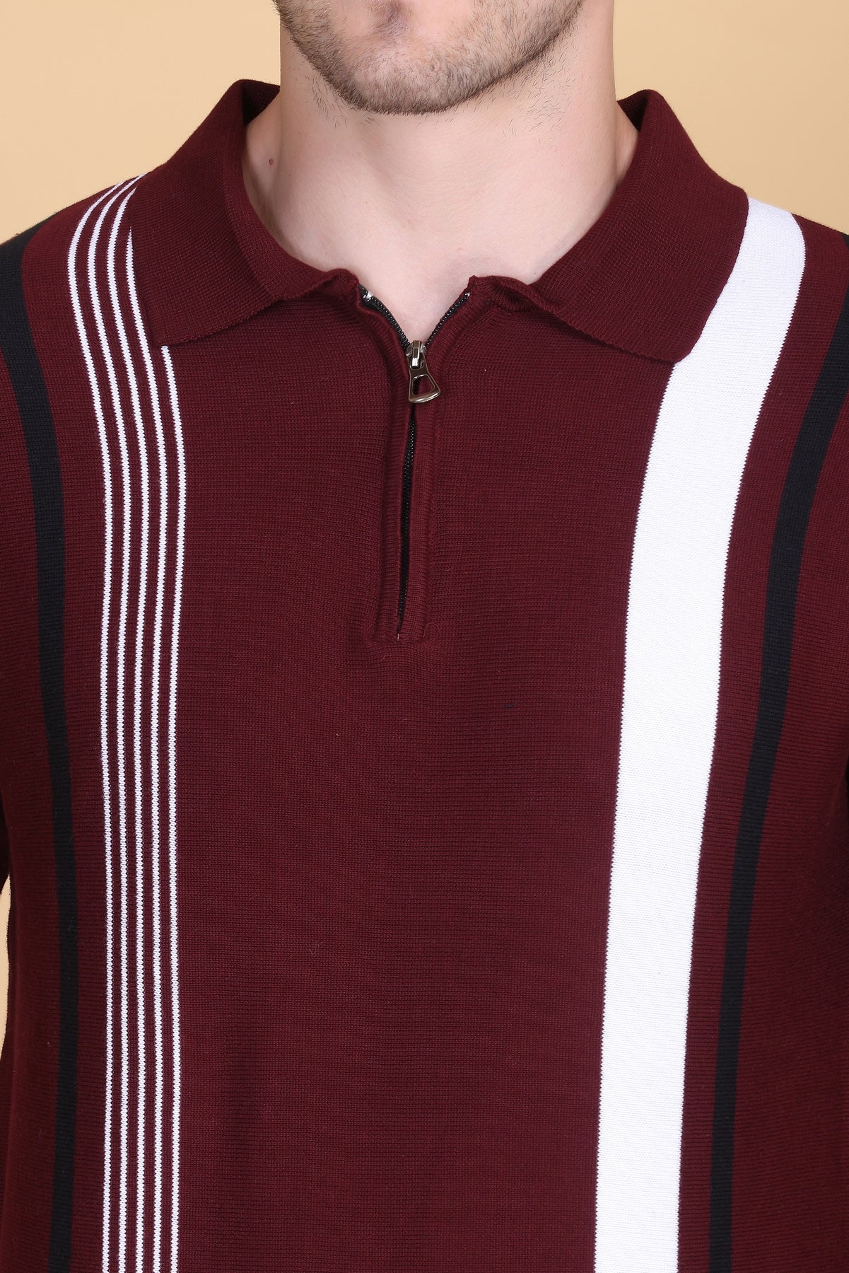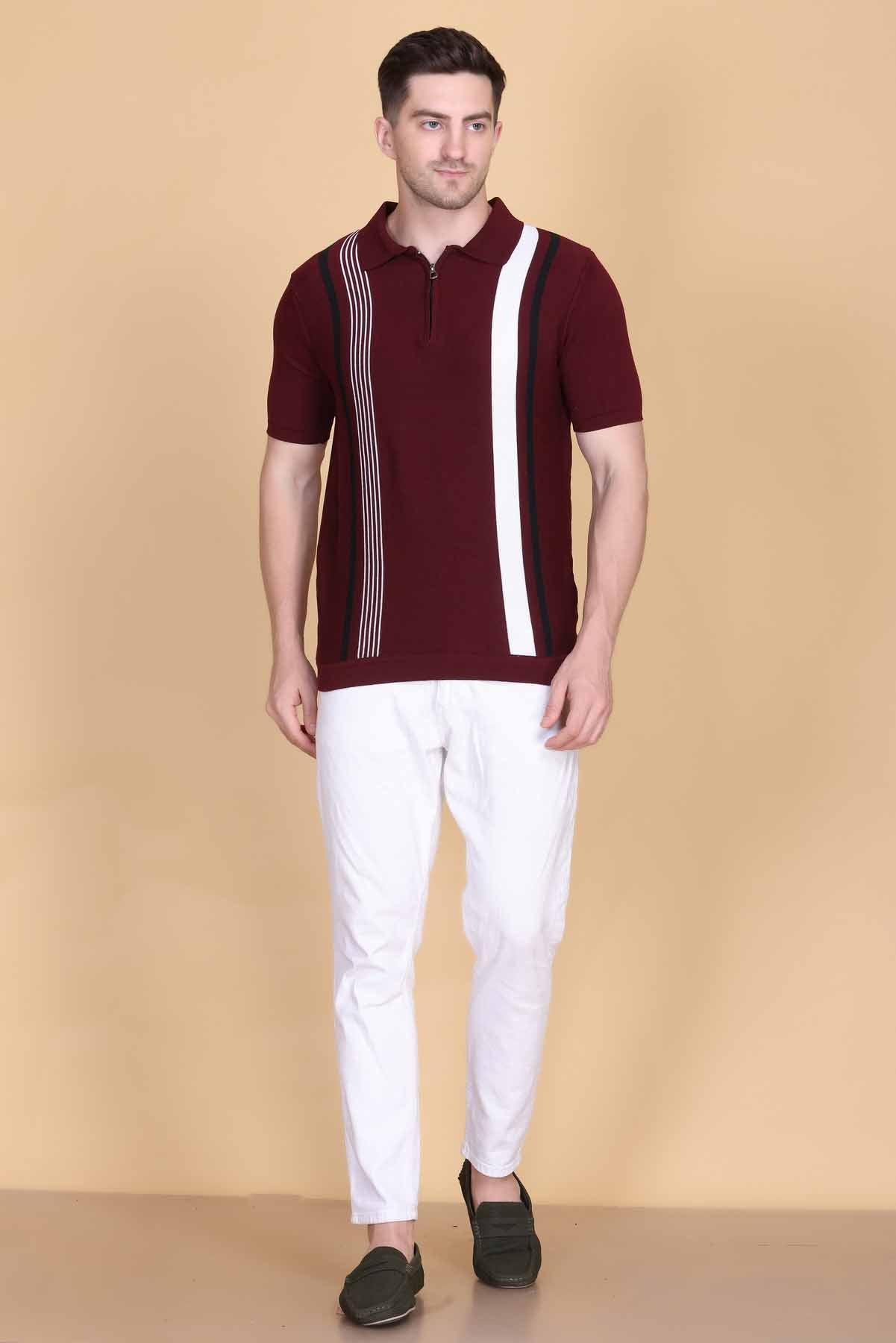 men knit polo t-shirt, colorblock polo shirt, maroon sky blue t-shirt, striped knitwear for men, casual cotton polo, premium half sleeve polo, smart casual t-shirt, mod style knit top, summer knit polo, soft cotton polo tee