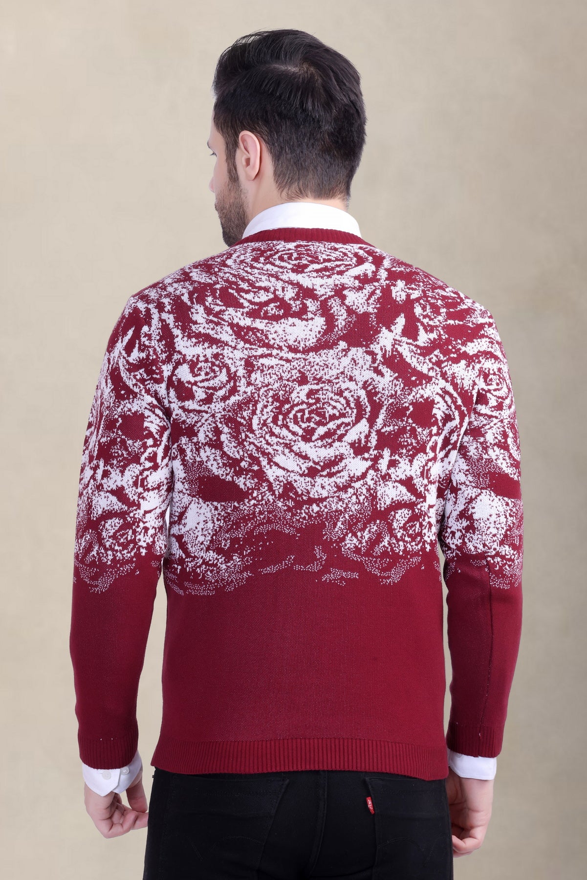 Upgrade your winter wardrobe with this Red & White Rose Jacquard Men’s Sweater, crafted with premium woolen knitted fabric for exceptional warmth and comfort. The unique all-over floral rose pattern adds a bold yet classy statement, making it perfect for men who love effortless style with a touch of elegance.