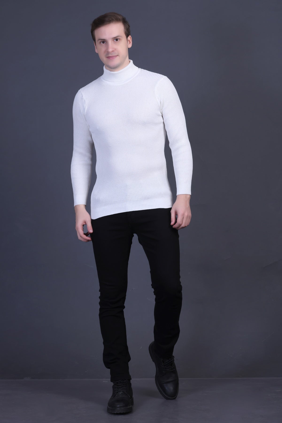 Neckline: Classic high turtleneck design for a sleek, modern look.